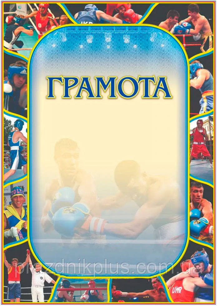 Бланк грамоти для нагородження: Заохочувальна спортивна грамота для боксерів №159 надрукована на імпортному крейдованому картоні щільністю 180 г/м2. Розмір бланка 210х297 мм дозволяє надрукувати текст за допомогою стандартного принтера.